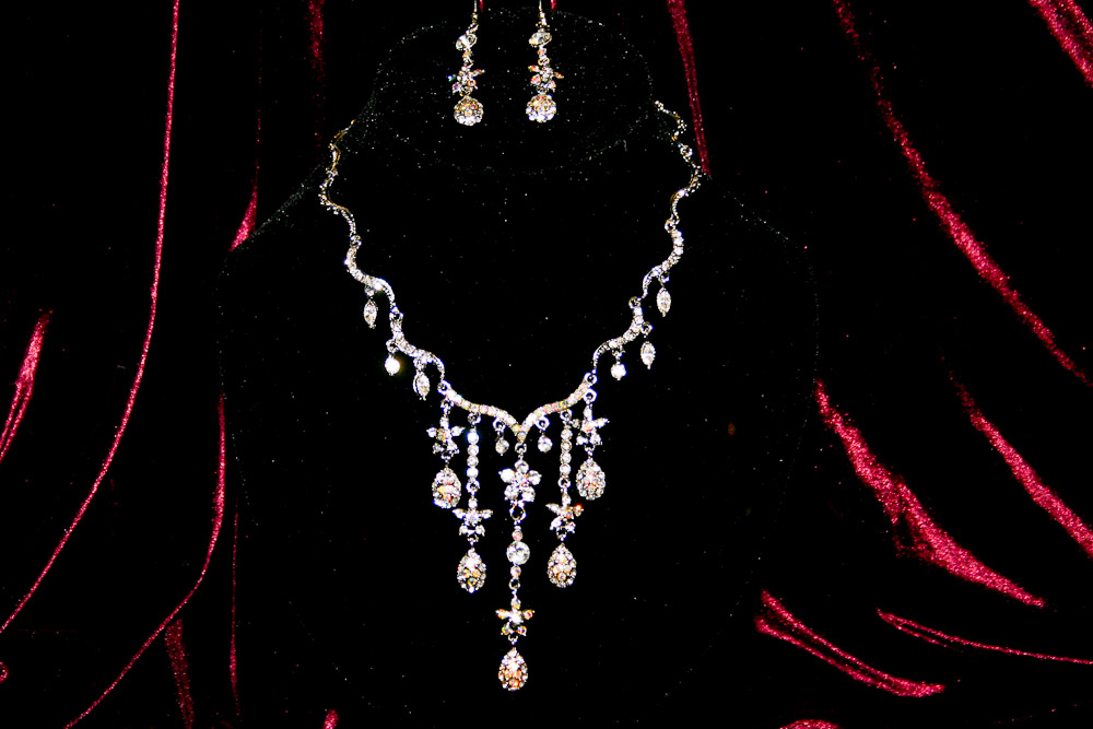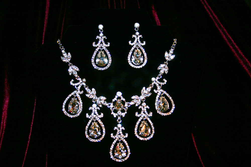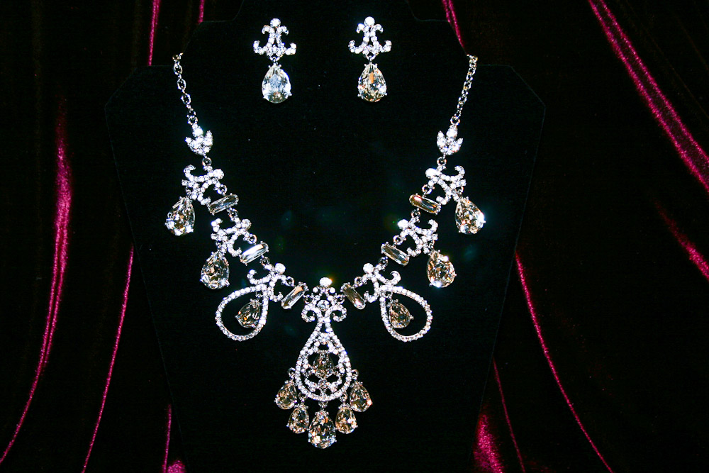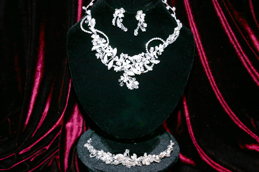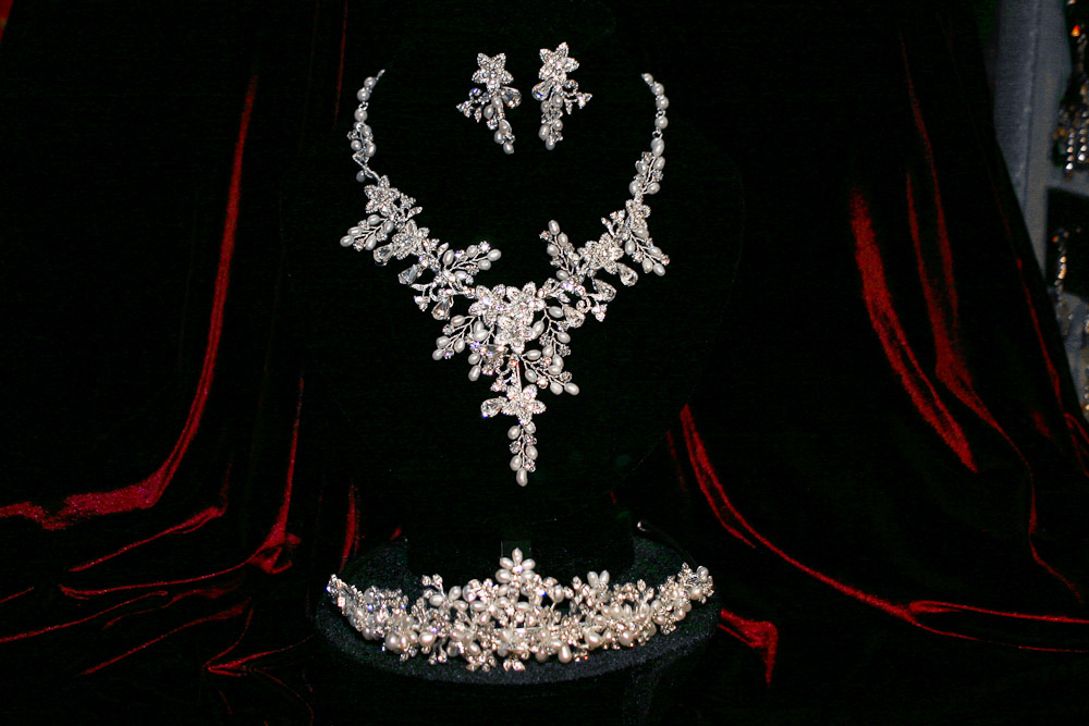 Our selection of beautiful wedding day jewelry sets has been carefully chosen to match or complement our tiaras and most modern gowns.
